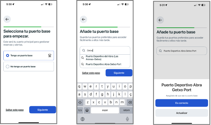 Una vez verificada la cuenta, en el proceso de configuración inicial (onboarding), el cliente debe seleccionar su puerto base (el mismo desde el que ha recibido el código).