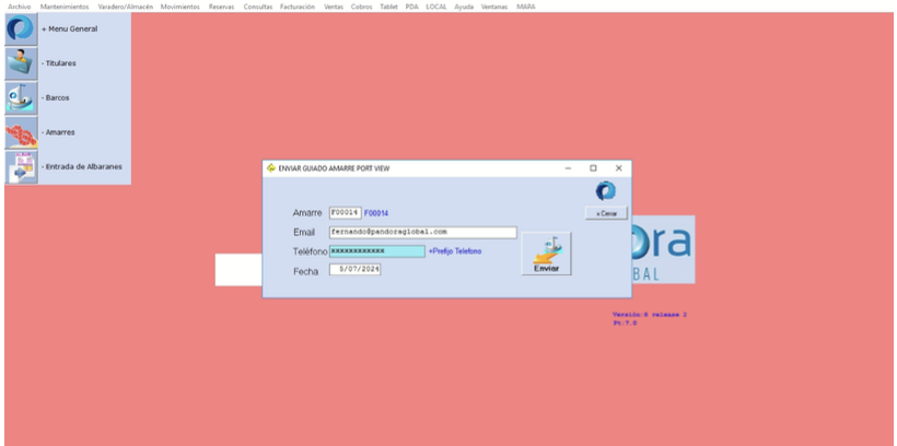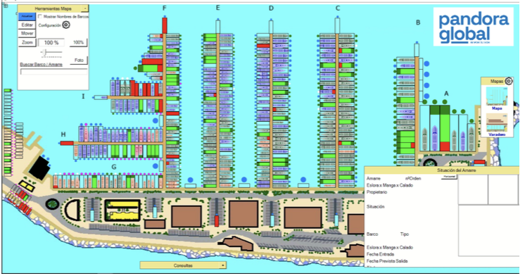 Confirma que el amarre está correctamente geolocalizado en el mapa de Pandora.