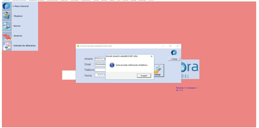 Al pulsar “Enviar”, el sistema envía automáticamente un correo electrónico y un SMS al cliente con el enlace para descargar Portview.